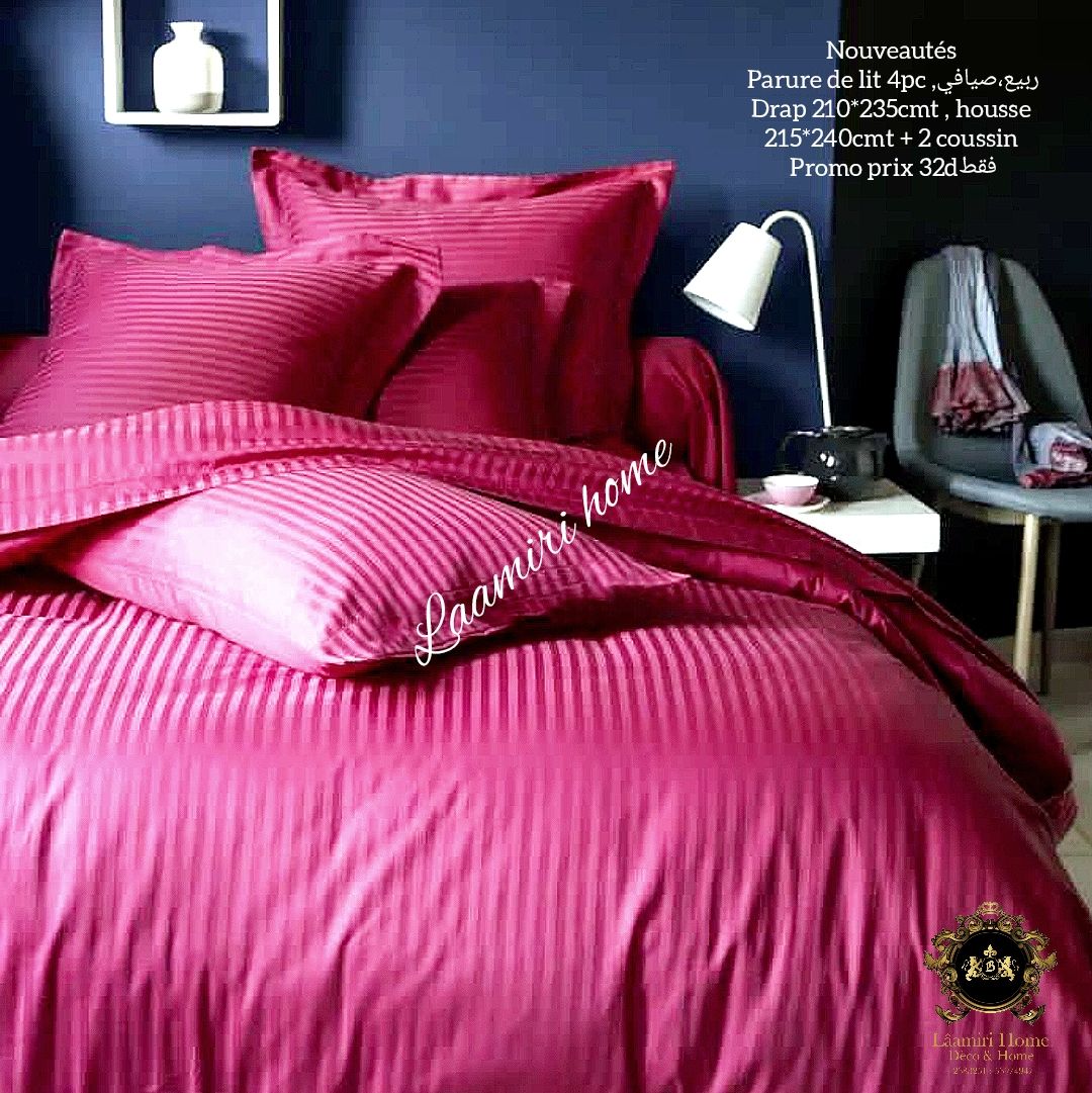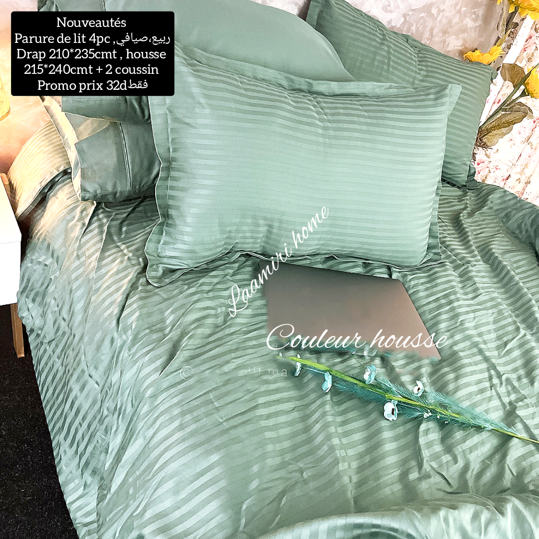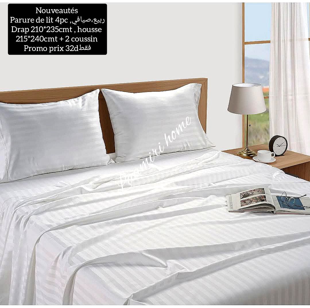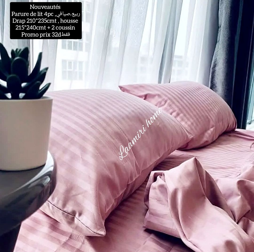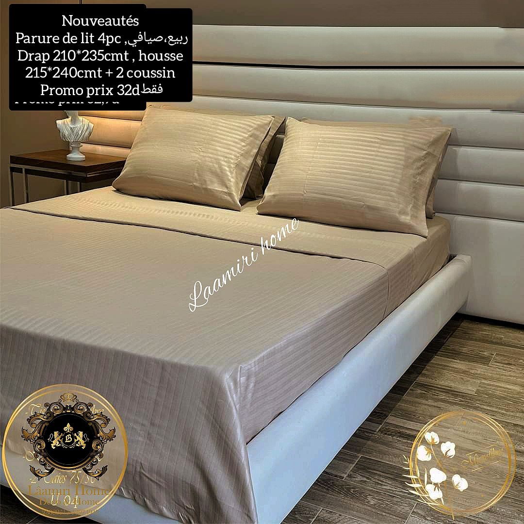 Parure de lit 4 pièces صيافي Drap 210*235cmt , housse 215*240cmt +2 coussin 70/50 qualité 100% cotton 🚛